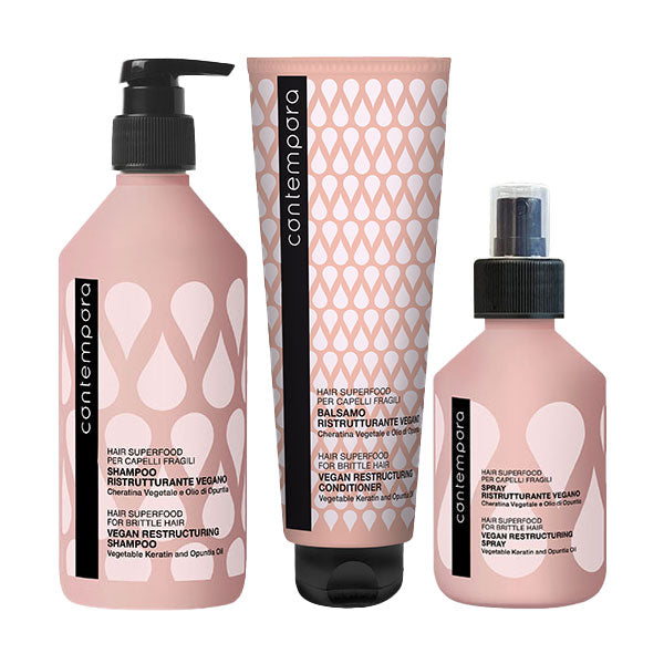 €47,50€47,50/Il Kit Ristrutturante Contempora si compone di Shampoo, Balsamo e Spray ristrutturanti. Questo trattamento idratante è ideale per capelli fragili, sfibrati ed opachi. Ricco di Cheratina Vegetale,...